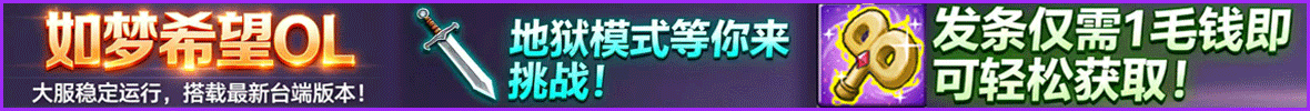 | 如梦希望ol | 公测 | 大服稳定运行,搭载最新台端版本! 地狱模式等你来挑战! 奥数宝石助力战力飙升! 发条仅需1毛钱即可轻松获取! 蓝图副本同步 |